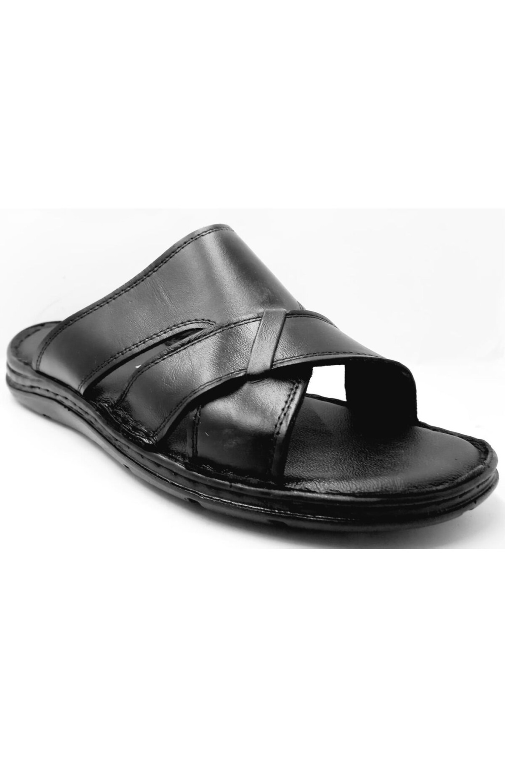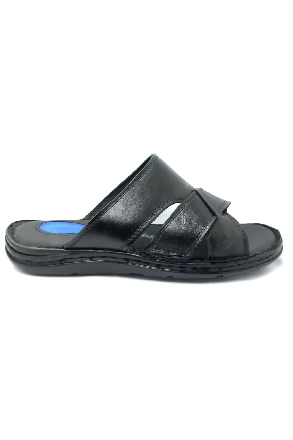 253 Siyah Erkek Jelli Kapalı Hakiki Deri Terlik